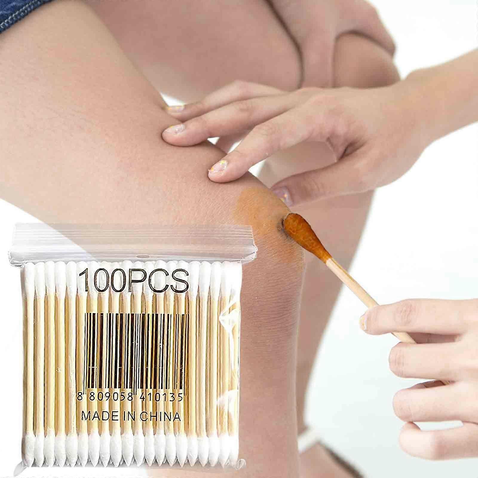100 Soft Bag Wood Stick Double Cotton Swab Sanitary Swab FLYE0914
