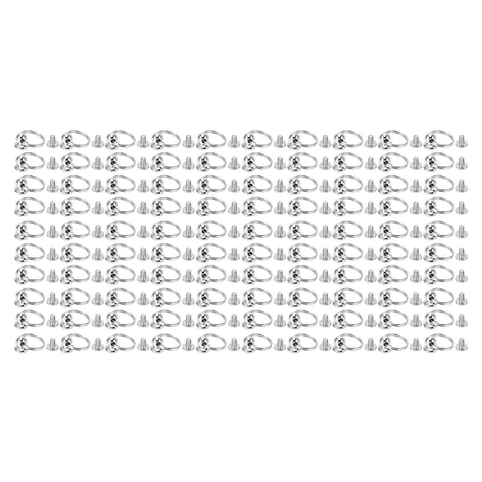 100 Sets Monk Rivet with Pull Rings 8mm High Gloss Copper Material Double Loop Pull Ring for DIY Clothing Bags Shoes Silver