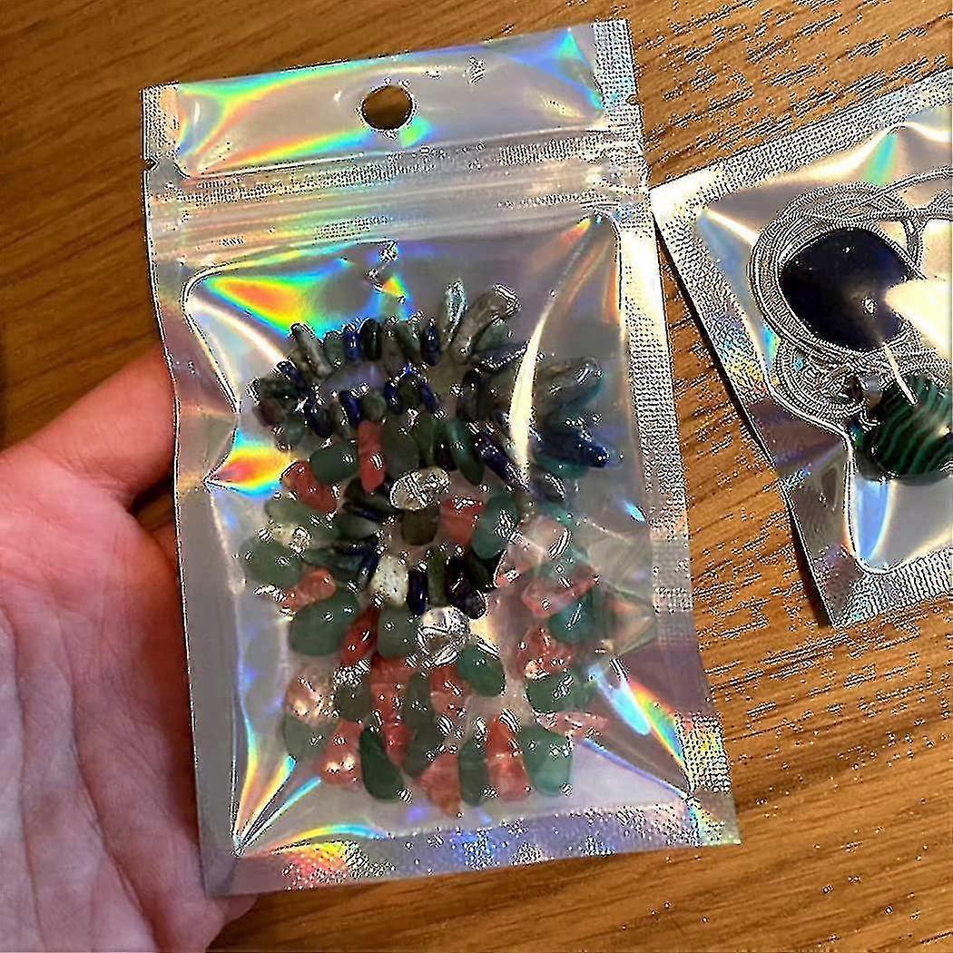 Holographic Packaging Bag 100 Pieces, Resealable Zipper Lock Food Storage Bag, Holographic Zipper Lock Mylar 10*15cm
