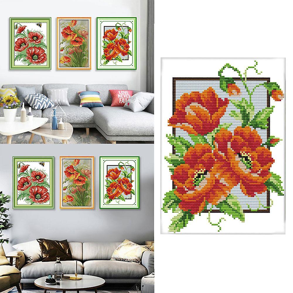 100% Cotton Embroidery Kits Flower Pattern Yarn Needlework Tool Kit 19x28cm