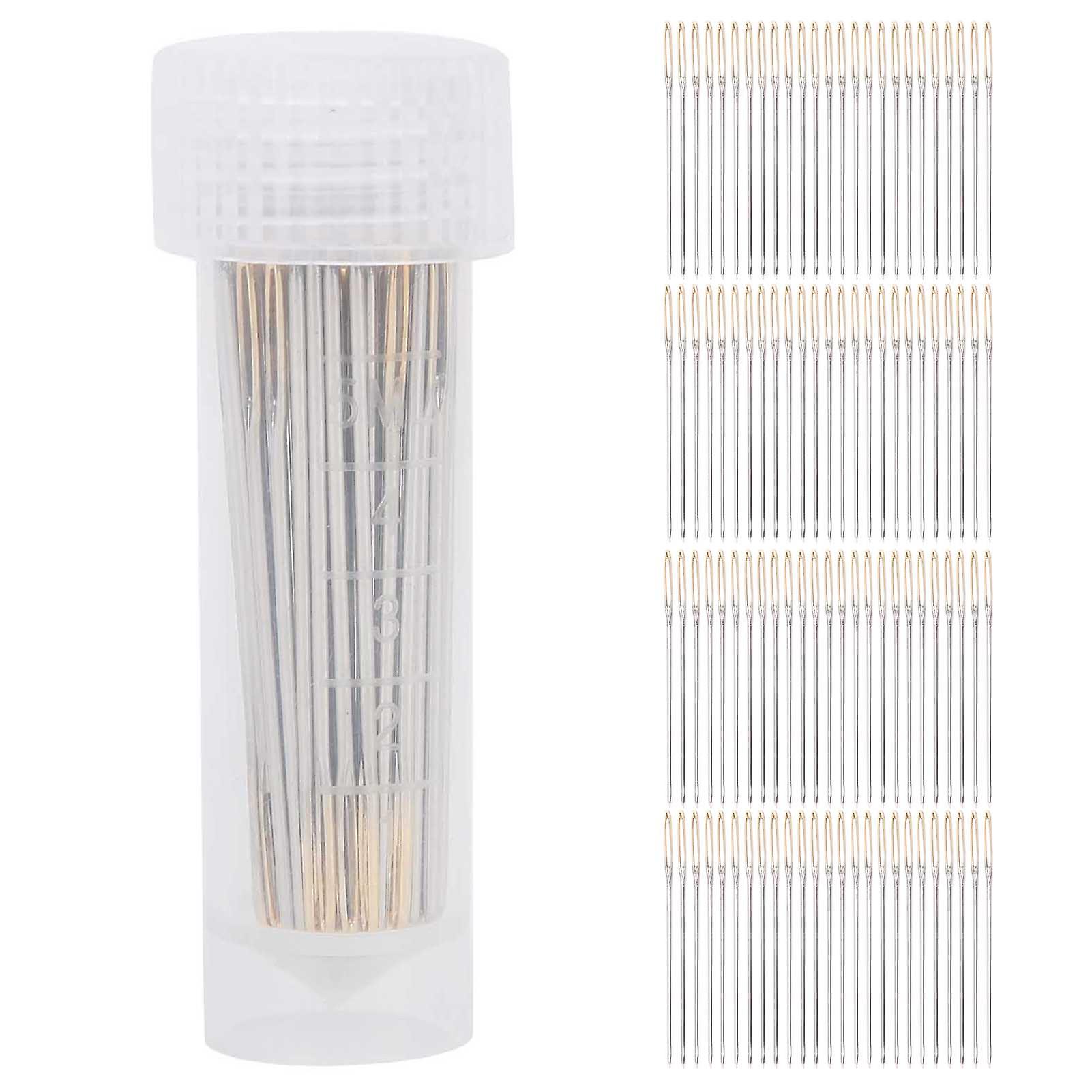 100Pcs Cross Stitch Needles Metal Large Eye Sewing Stitching Embroidery with Storage Box22#