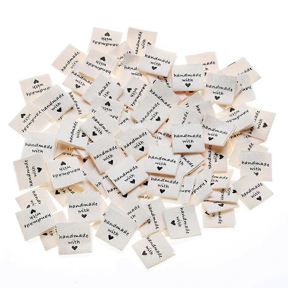 100 5pcs Handmade with Love Fabric Labels Tags Cotton Costume Clothing Labels Textile Labels Handmade with Labels