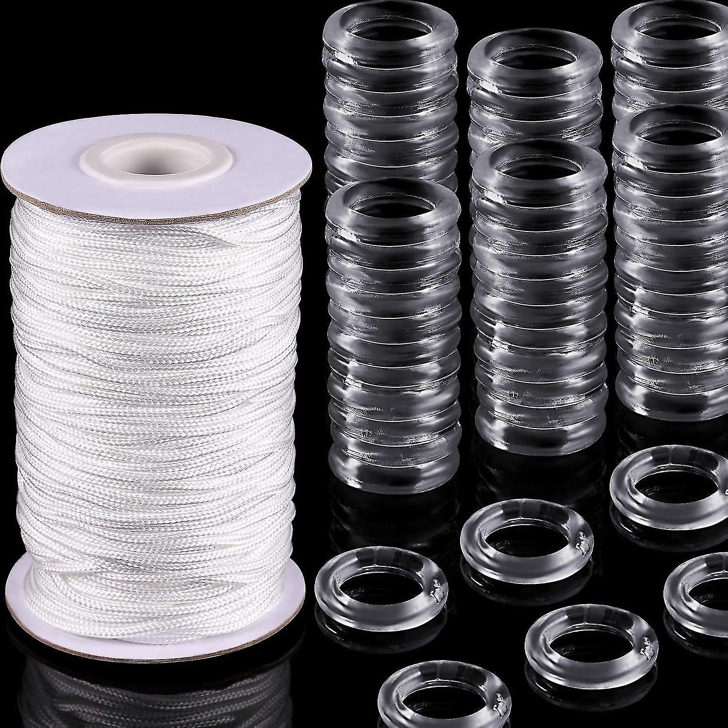 Roman Curtain Rings, 100 Pieces Clear Blind Roman Ring And 50m 1.8 Mm Roman Blind Cord White Braided Lift Shade Cord Transparent Plastic Rings For Diy