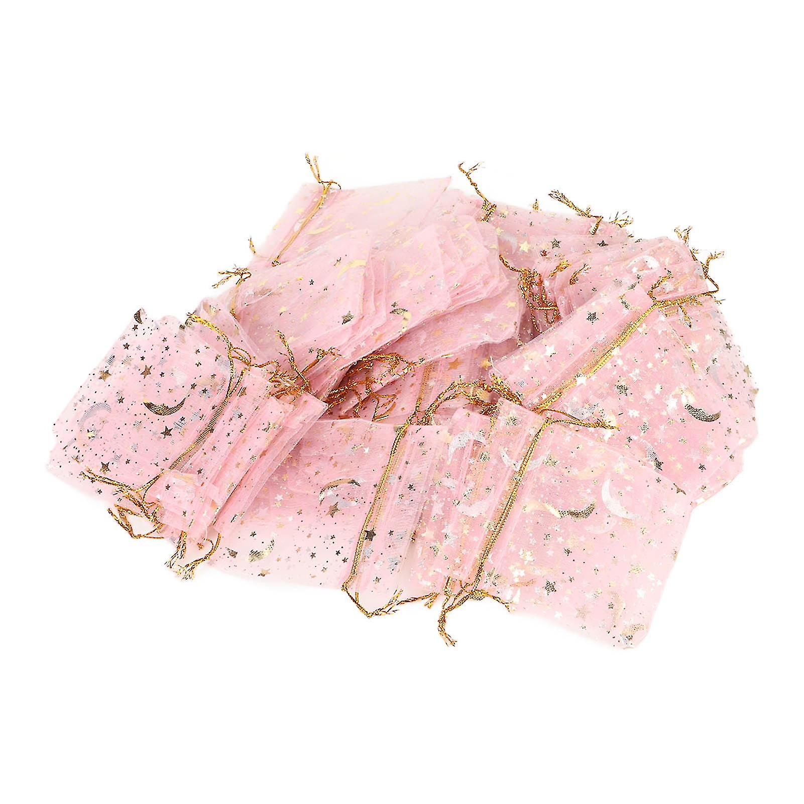 100pcs Moon Star Organza Bags with Drawstring Transparent Cute Pink Organza Gift Bag for Party Christmas Festival
