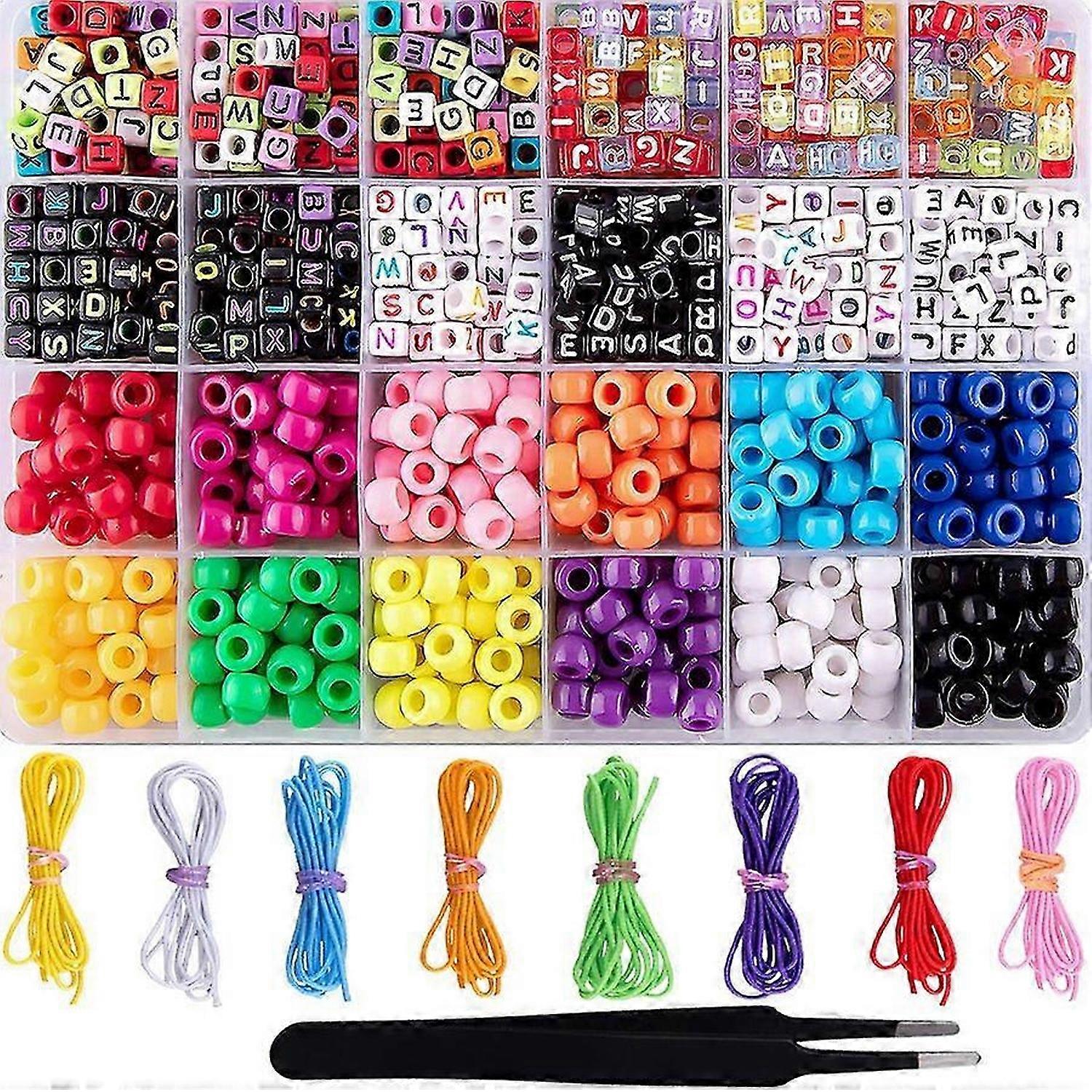 1000 Pieces Bracelet Making Beads ABC Beads Beads Letter Alphabet Beads with 8 Rolls Colorful Elasti