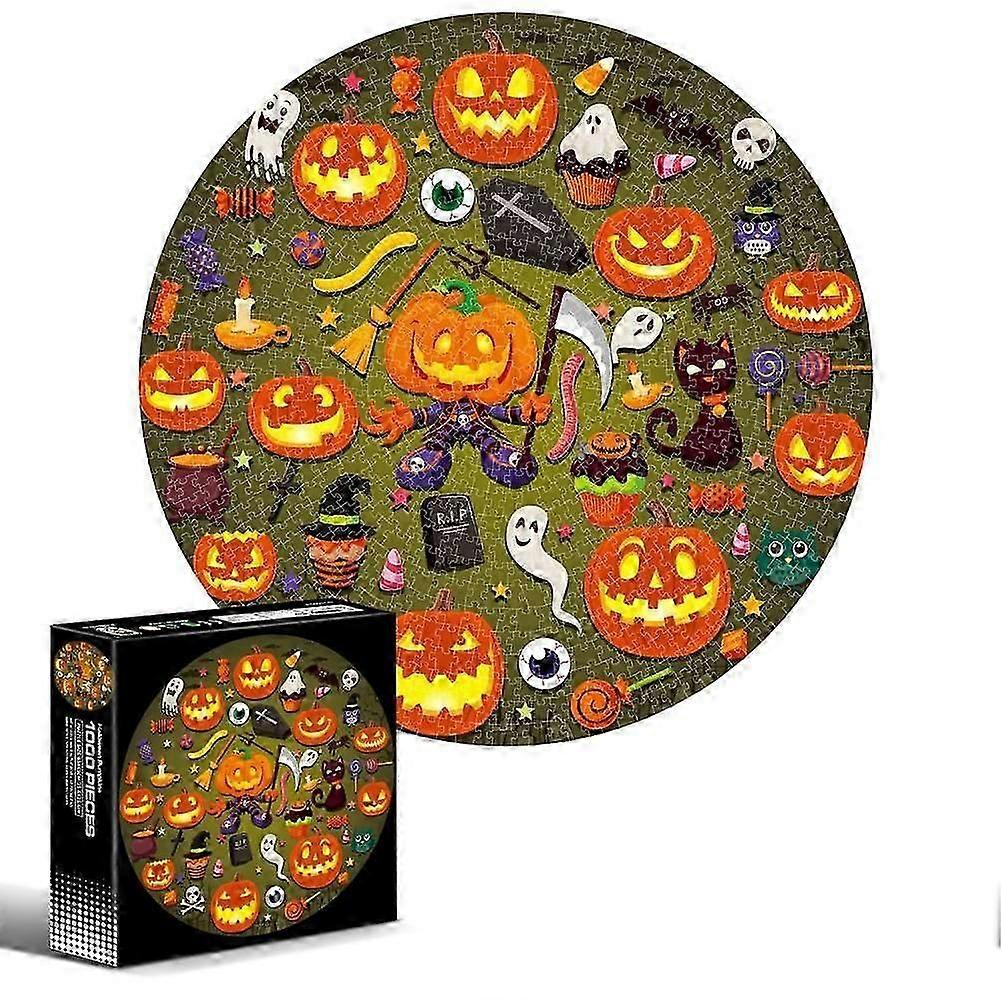 1000PCS Halloween Jigsaw Puzzle Round Jigsaw Puzzles Educational Decompression Toys Gifts for Kids and Adults