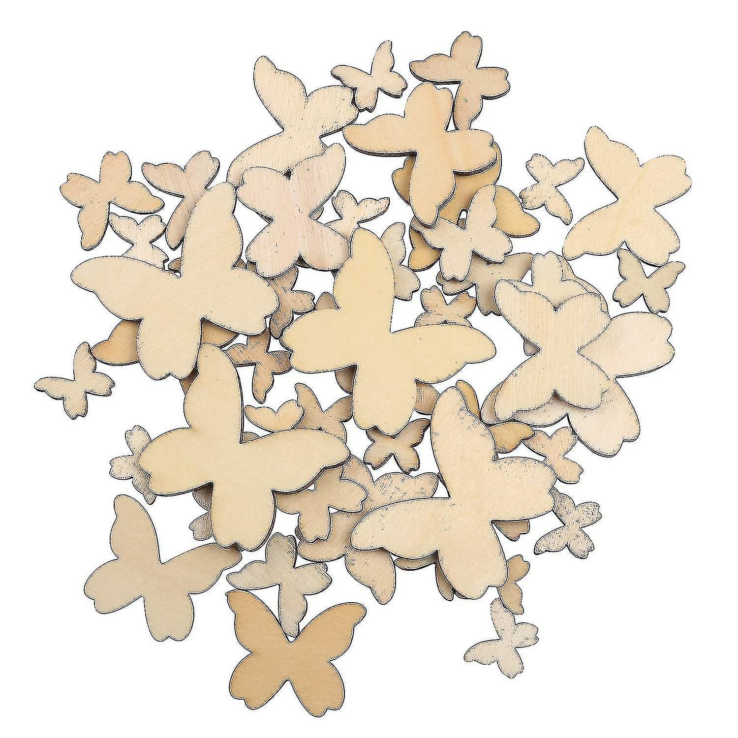 100/200pcs Unfinished Wooden Butterfly Ornaments, Assorted Size Blank Wood Pieces Cutout For Diy Crafts