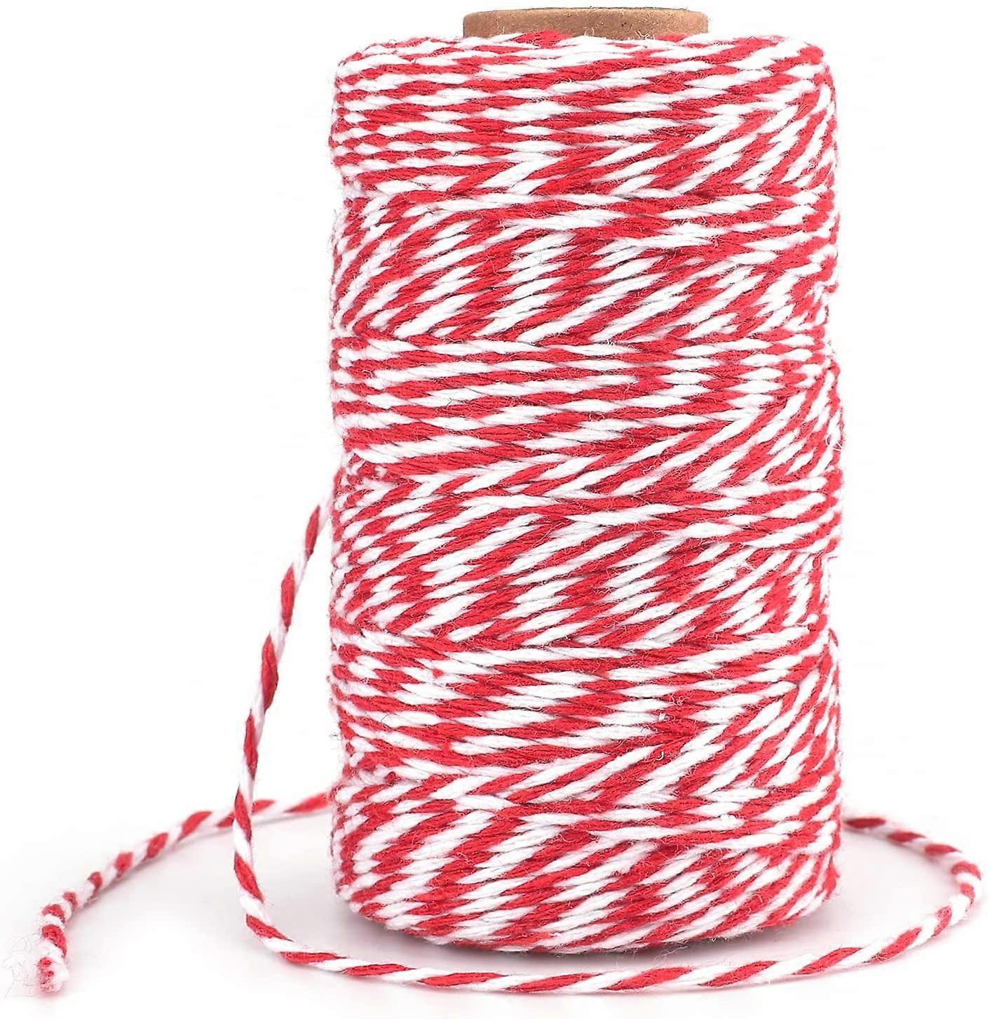 100M Red and White String Christmas Rope Red Christmas String Red Durable Cotton String for Baking,Christmas Gift Wrapping