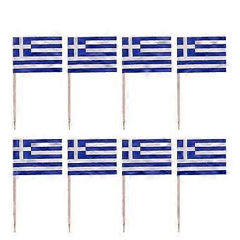 100pcs Wooden Flag Toothpicks National Day Decoration Cupcake Toppers Food Toothpick (greece)