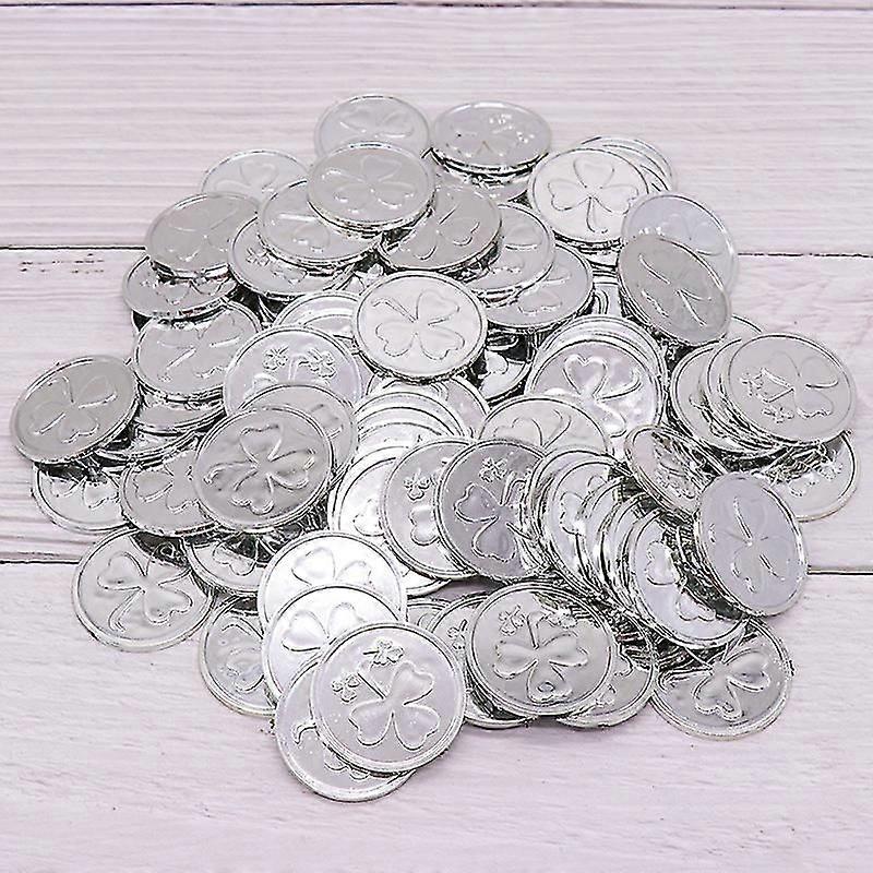 100pcs St. Patrick's Day Shamrock Coins, Shining Lucky Plastic Coin 4-leaf Clover Irish St. Patrick's Day Coins