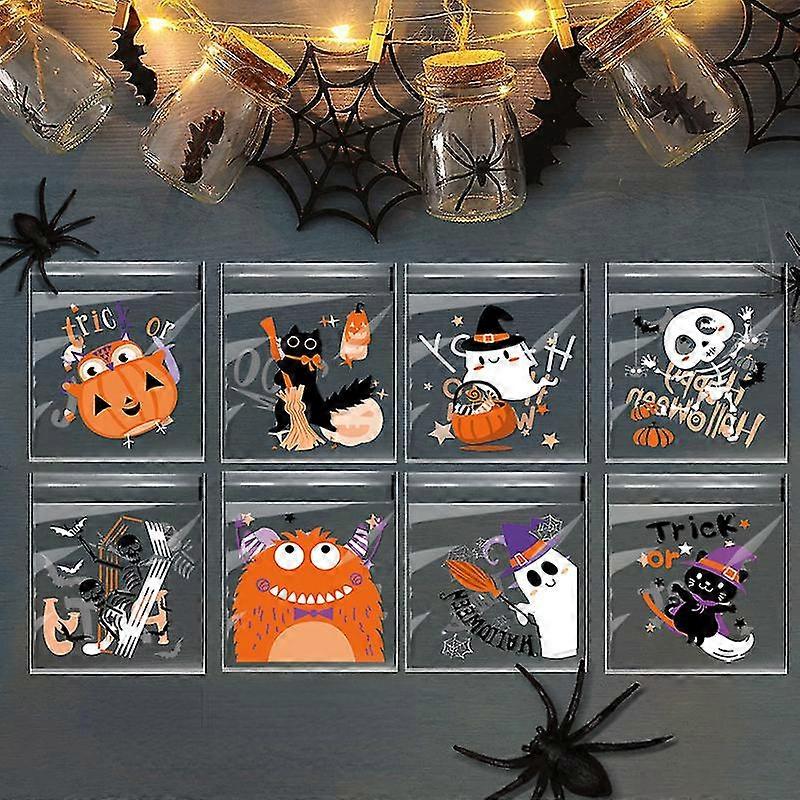 100pcs Happy Halloween Candy Bag Gift Cookie Bags Biscuits Snack Plastic Packaging Bags Halloween Party Decor Supplies