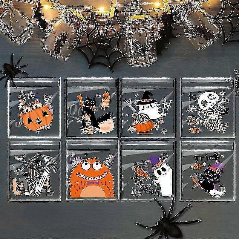 100pcs Happy Halloween Candy Bag Gift Cookie Bags Biscuits Snack Plastic Packaging Bags Halloween Party Decor Supplies