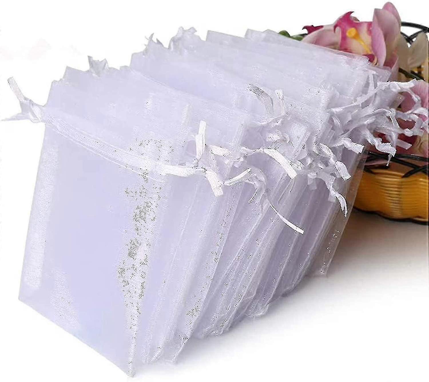 100pcs Premium Sheer Organza Bags, White Wedding Favor Bags With Drawstring, 4x4.72 Jewelry Gift Bags For