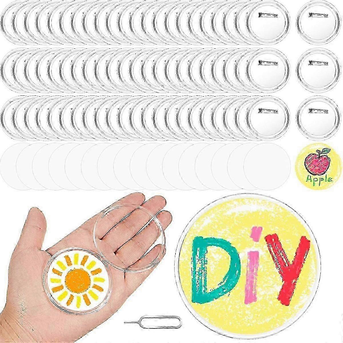 100pcs Acrylic Clear Buttons, Make Your Own Buttons, Acrylic Design Button Badge for DIY Craft School