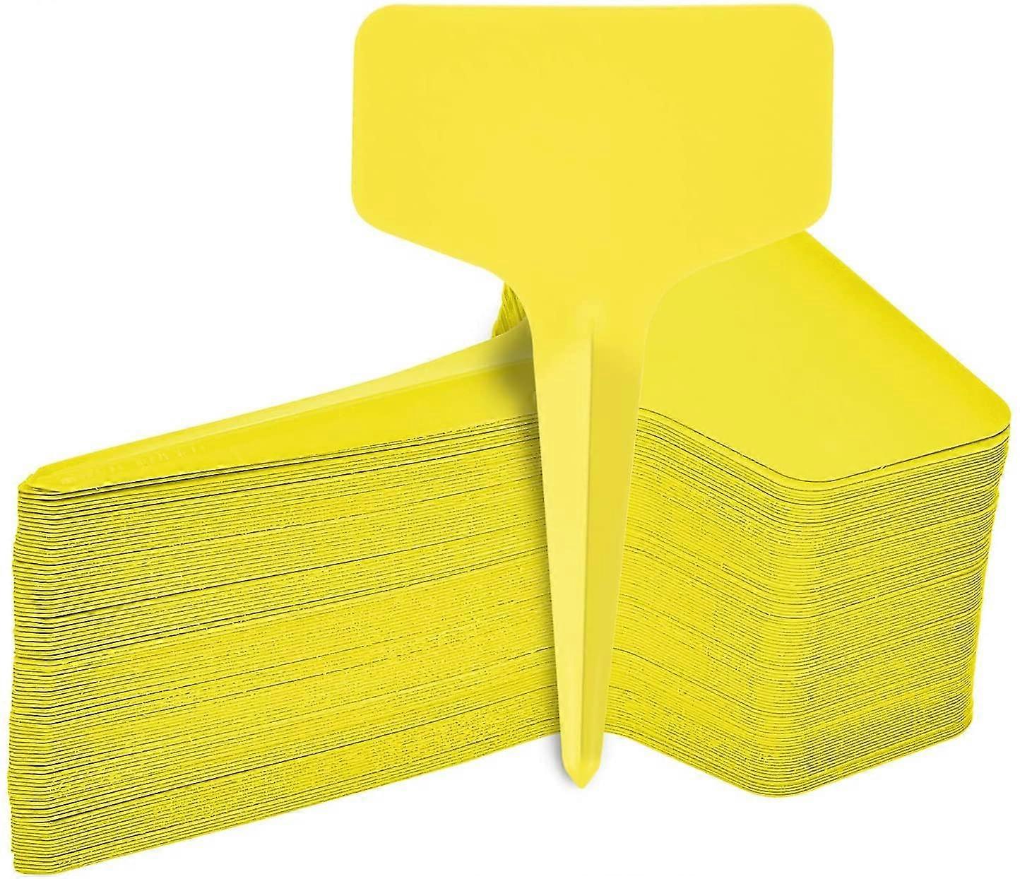Size and quantity: 10cm / 3.94inch long, 6cm / 2.36inch wide. yellow. The package includes: 100 T-shaped plastic plant tags. Double-sided writable plant tags provide enough space to write, name plants, mark types or record growth, etc. The T-shaped design is more conducive to insertion into the soil, and will not damage the roots of plants. High quality material: The plant tag is made of high quality plastic, has the flexibility, durability, weather resistance, water resistance, UV resistance, is not brittle or cracked and will not rust like a metal tag. Simply clean it with household cleaners and it can be reused. Can be used indoors and outdoors. Plant labels are very easy to write on smooth surfaces with markers, UV resistant, durable, water repellent, not brittle or cracked, and will not wash off not in the rain or will not fade in the sun. When you have many potted plants, you can mark the name, date, and growth status of the plant. Easy-to-use household cleaners to clean to reuse and save resources. DIY Project: You can design your own personalized plant brand in the garden, greenhouse, classroom project, kindergarten or home decoration. You can write any text or picture, paint any color to make it stylish and unique. Creative design stimulates your children's imagination and cultivates their practical skills. It is the perfect gift for any gardener or plant lover. Wide range of applications: Garden labels are suitable for small greenhouses, farms, vegetable fields, orchards, nurseries, botanical gardens, small potted plants or your garden. Great for marking trees, plants, flowers, vegetables, seedlings, greenhouses, vines, potted experiments, ornamentals, herb gardens, etc. The perfect outdoor and indoor flowerpot label. Delivery quantity: 100PCS