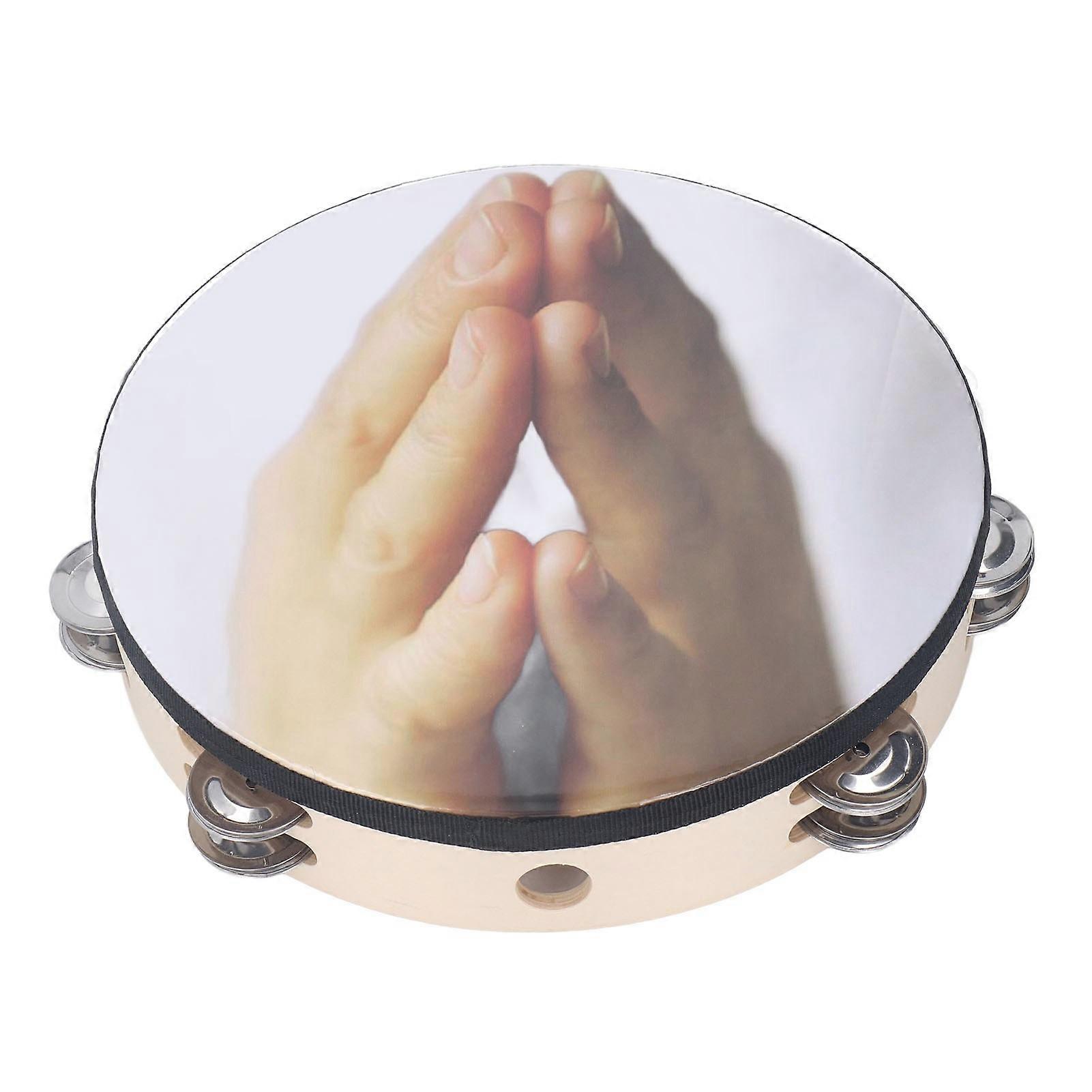 10in Double Row Musical Tambourine PET Waterproof Jingles Tambourine Hand Held Percussion Drum Pray Pattern