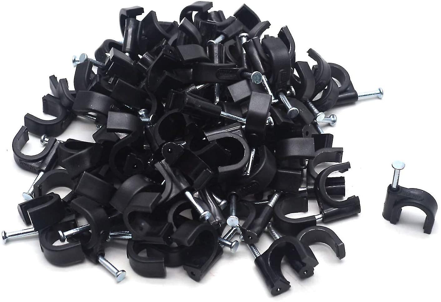 10mm Round Cable Clamp Steel Nail Wire Clamp Firmware Network Cable Nail, Black, 100/pk