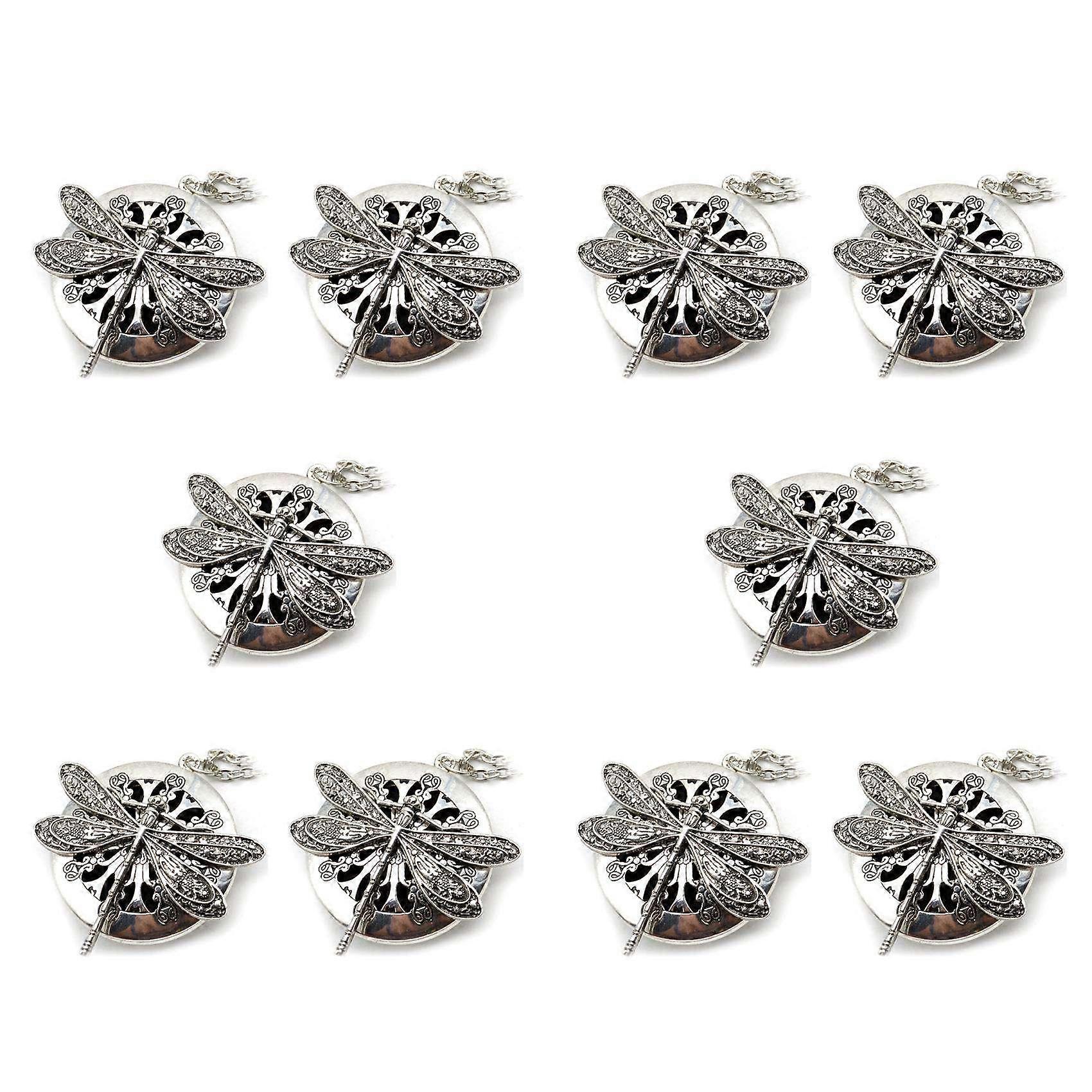 10Pc Antique Silver Dragonfly Aromatherapy Diffuser Pendant Necklace