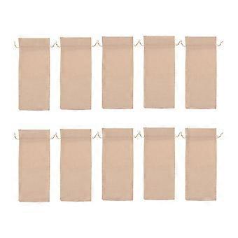 10pcs Jute Wine Bag Hessian Wine Bottle Gift Drawstring Bag Wine Bottle Bag Light Yellow