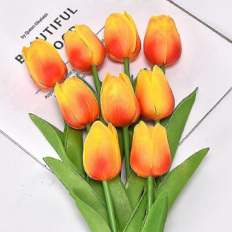 10pcs Artificial Flowers Fake Flower Tulip Latex Material Real Touch For Wedding Room Home Hotel Party Decoration And Diy Decor