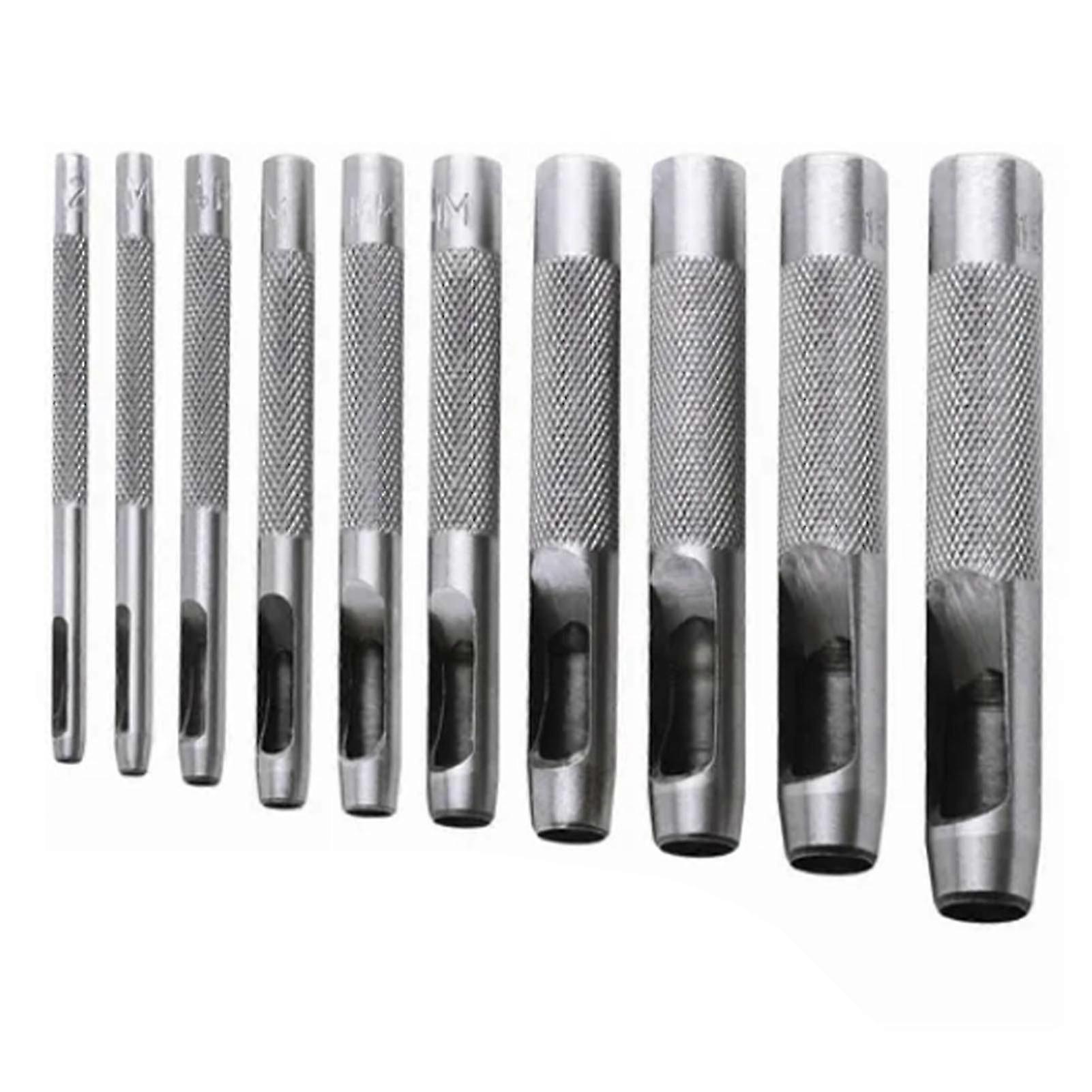 10PCS Belt Punch Set Carbon Steel High Hardness Round Hollow Leather Hole Punch for Plastic Rubber