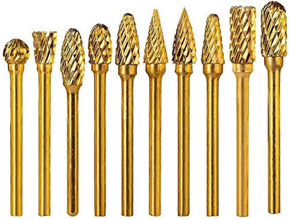 10pcs Titanium Carbide Double Cut Rotary Burrs 3mm Shank 6mm Head Solid Tungsten Carbide Burrs