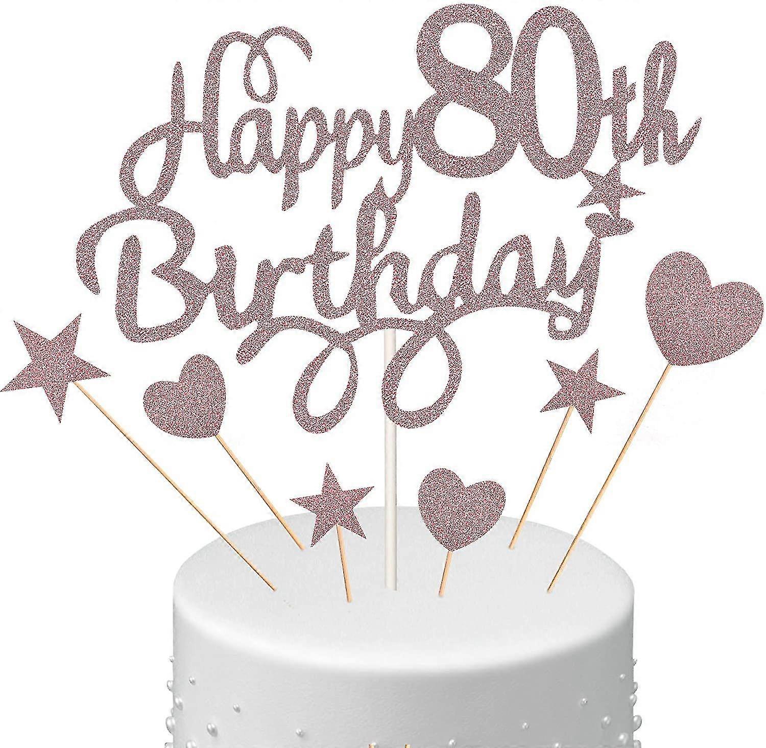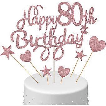10pcs 80th Birthday Cake Toppers For Ladies Women, Happy 80th Birthday Cake Topper With Star Heart Cake Topper