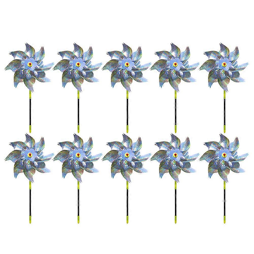 10Pcs Reflective Pinwheels Design Bird Repellener with Stakes Sparkly Windmill Bird Deterrent Devices Home Garden Decorative