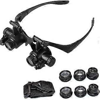 10x 15x 20x 25x Magnifying Glass With Led Light, Illuminated Head Mounted Magnifier