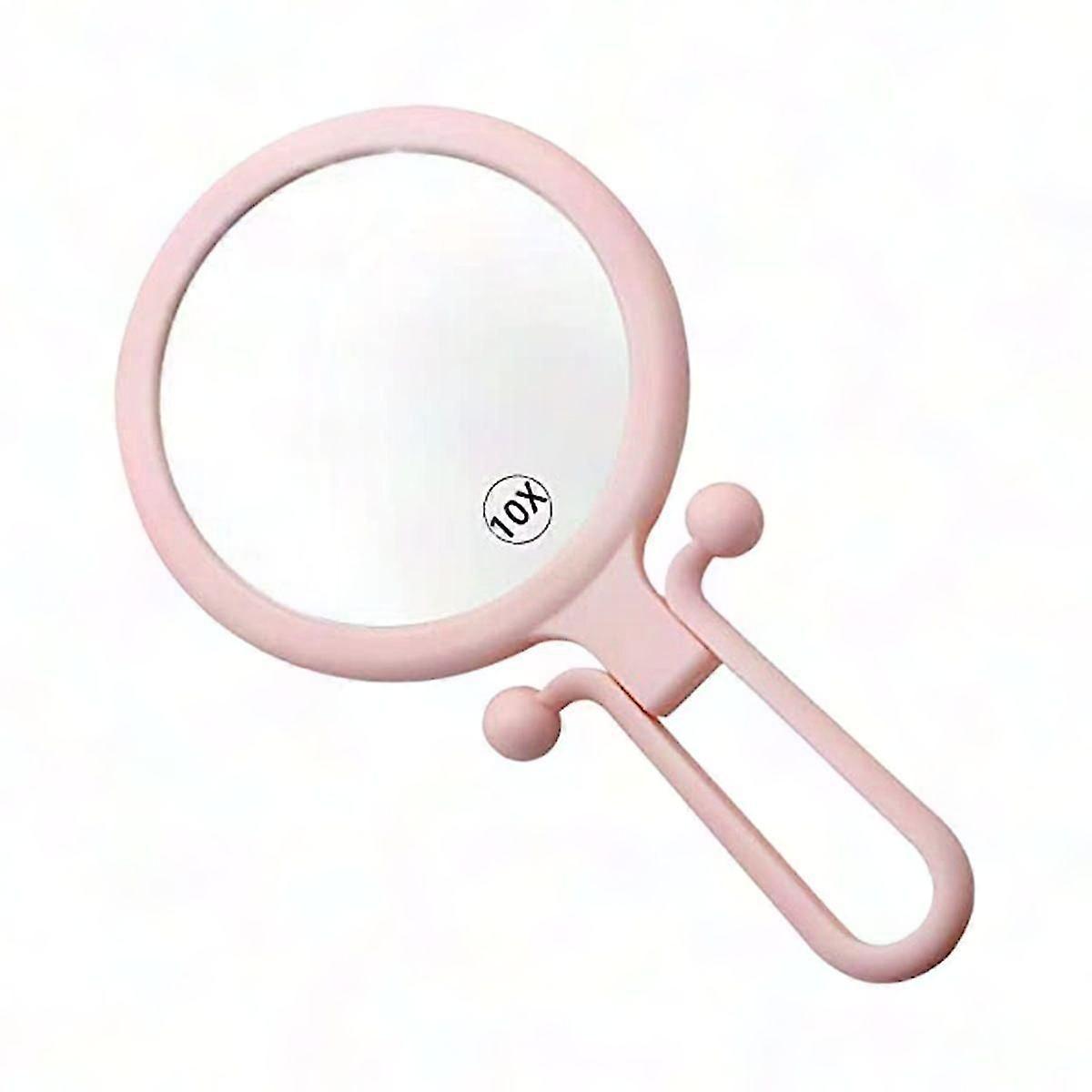 10X Handheld Magnifier - Double Sided Folding Mirror with Adjustable Handle, Portable & Compact