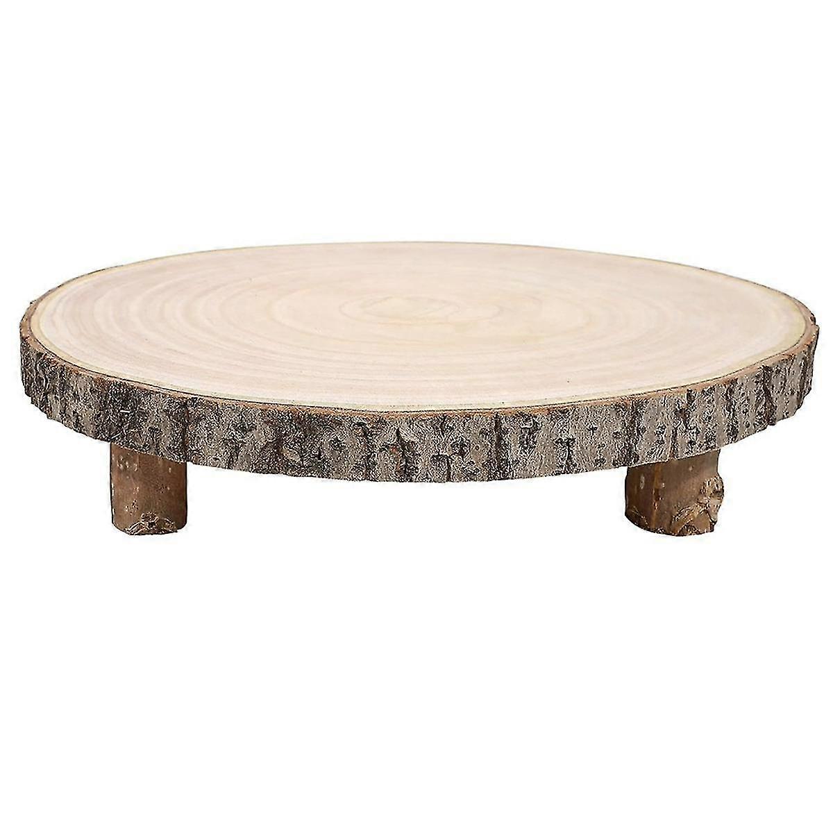 11 Inch Wood Cake Stand, Round Wooden Cupcake Pedestal, Paulownia Wood Slice With Legs, Rustic Cake Holder Wooden