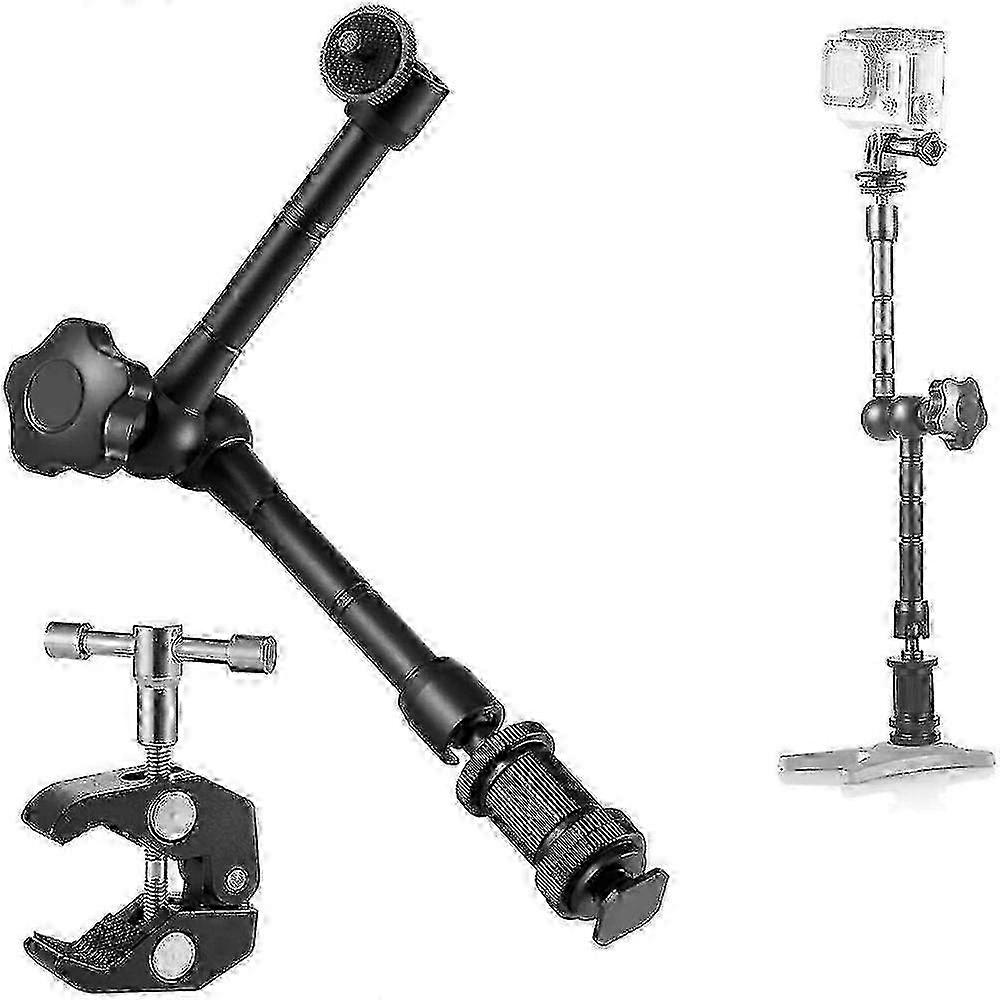 11 Inch Articulating Friction Magic Arm & Large Adjustable Super Clamp Pliers Clip With 1/4"" And 3/8"" Thread For Dslr Camera Rig, Lcd Monitor, Led F