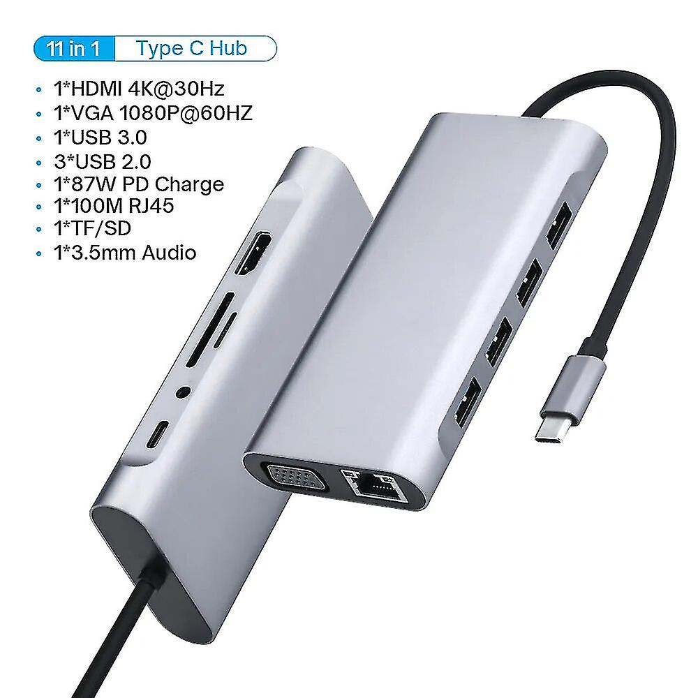 11 In 1 Usb C Hub Type C Adapter To 4k Hdmi-compatible Vga Rj45 Lan Ethernet Sd/tf Aux 11 Port Dock Station Pc Laptop Splitter