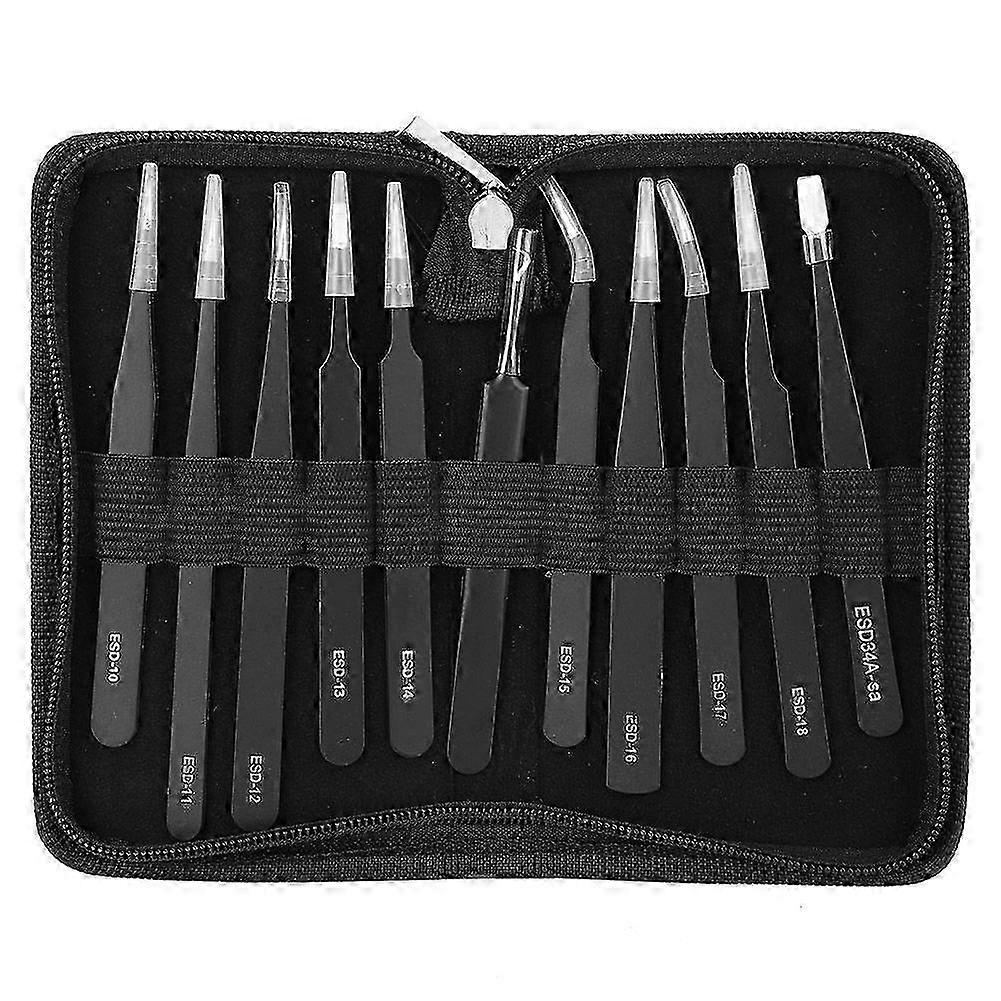 11Pcs/Set High Hardness Stainless Steel Precise Tweezers Repairing Tool Accessories with Bag11Pcs Tweezers with Bag