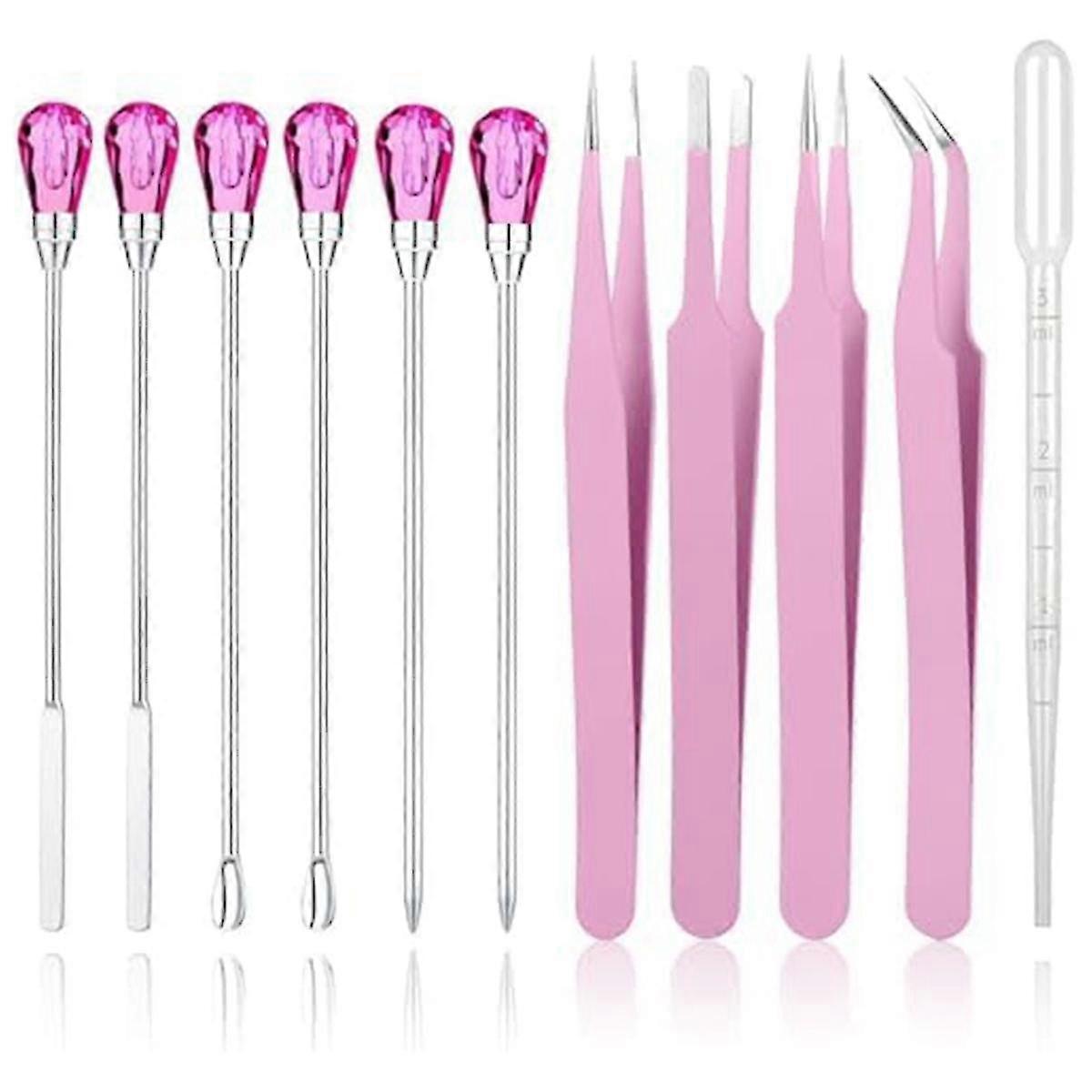 11 Pcs Resin Mold Tools Set Stirring Needle Spoon Tool Tweezers Precision Kit (pink + Rose Red)