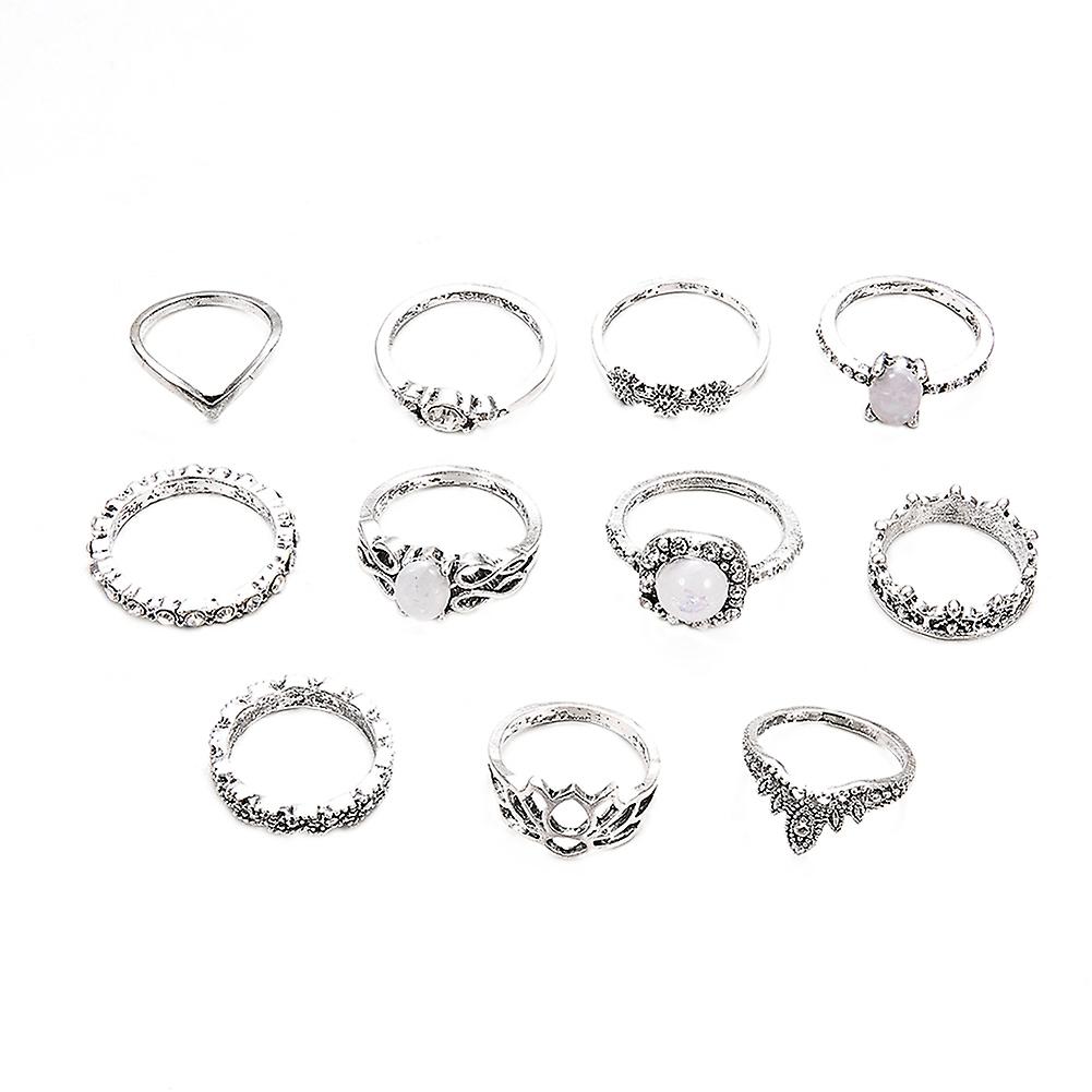 11Pcs Women Jewelry Set Faux Opal Rhinestone Knuckle Stacking Joint Rings Band