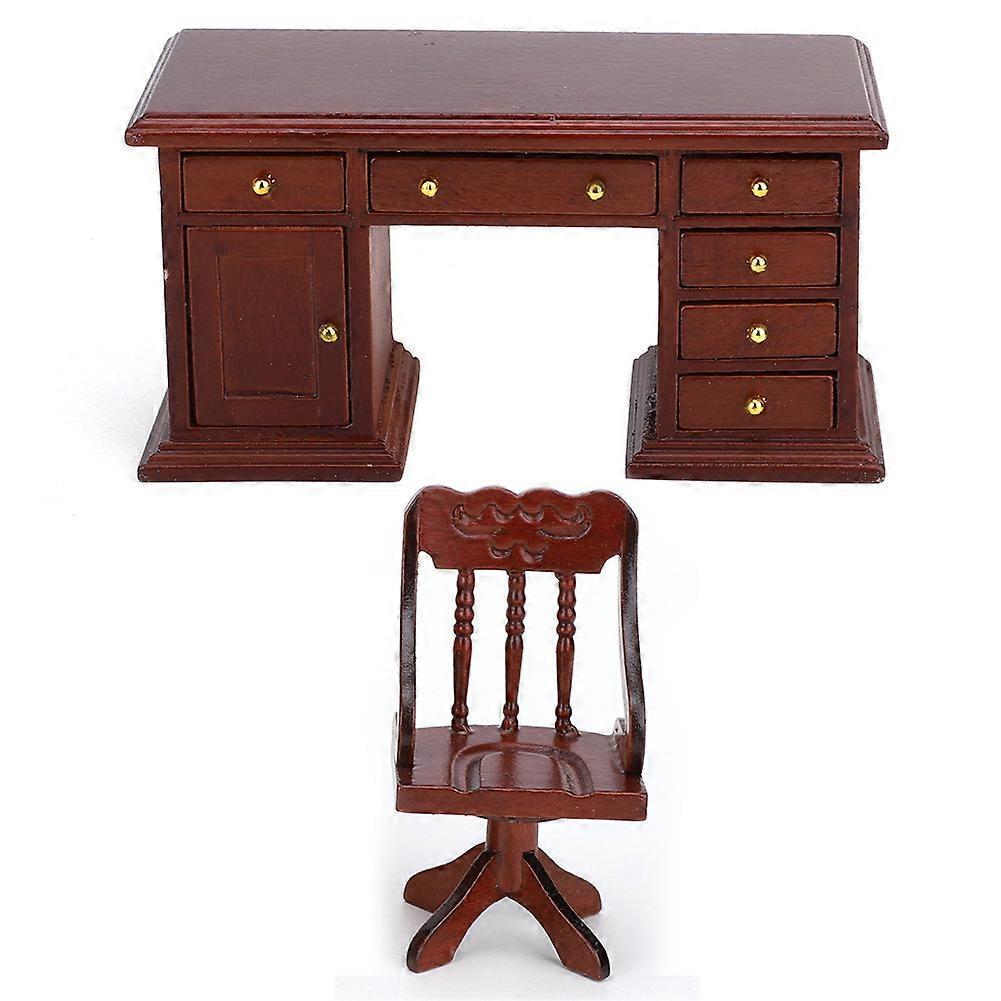 1:12 Mini Furniture Model Wooden Desk Chair Children's Study Decoration Doll House AccessoriesDesk Chair