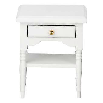 1:12 White Mini Bedroom Furnishing Articles Wooden Bedside Table Model