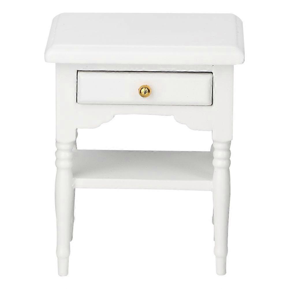 1:12 White Mini Bedroom Furnishing Articles Wooden Bedside Table Model