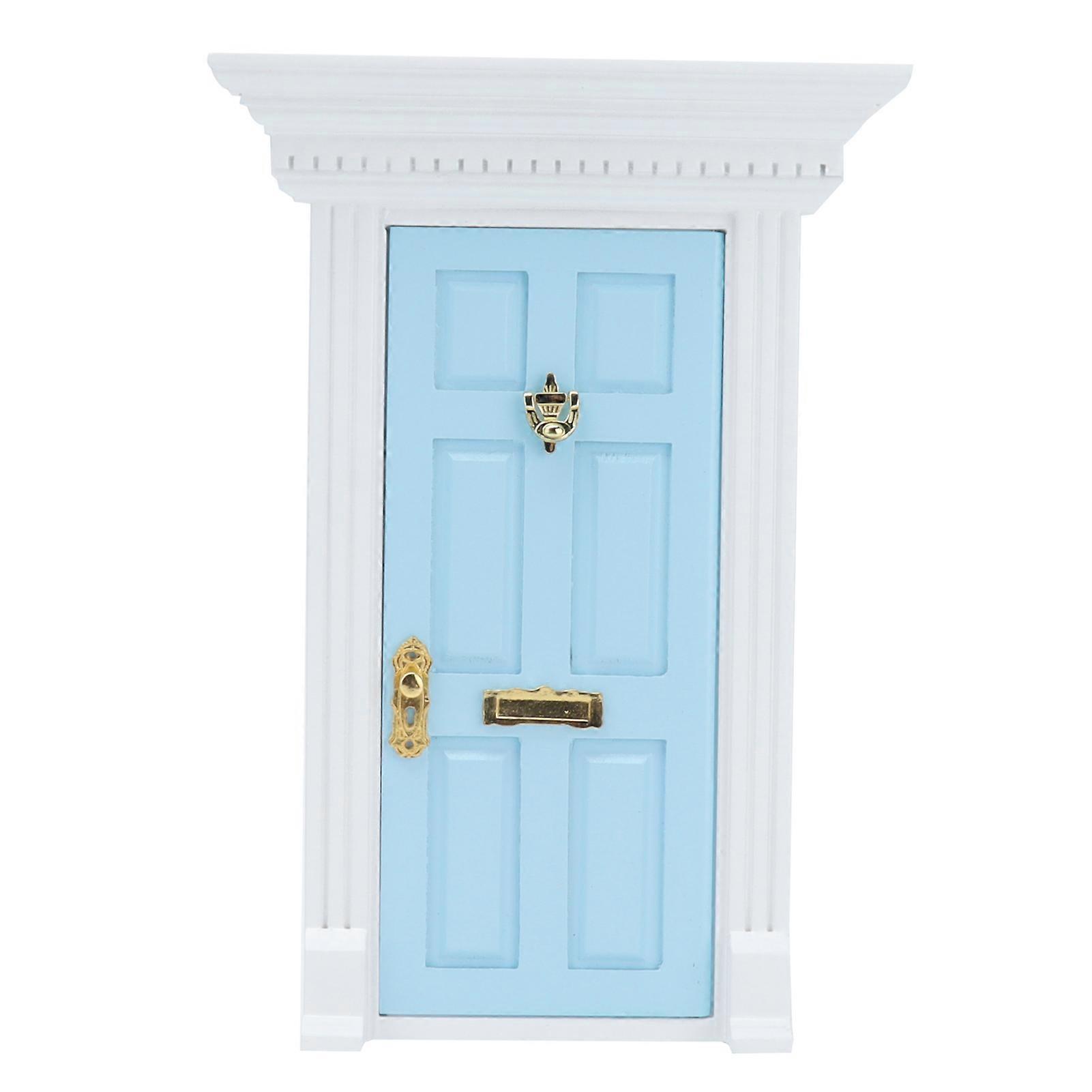 1:12 Dollhouse Wooden Door Exquisite Miniature Door Furniture Model Pretend Play ToyBlue