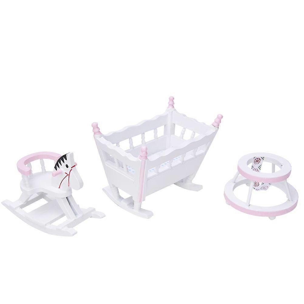 1:12 Doll House Accessories Mini Furniture Dollhouse Cradle Wooden Horse Stroller SetWhite