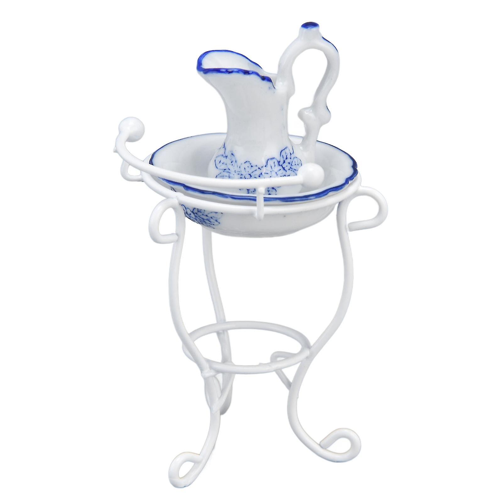 1:12 Dollhouse Washbasin Stand Kettle and Basin, Realistic Miniature Bathroom Accessories, Exquisite Decor for Dollhouse