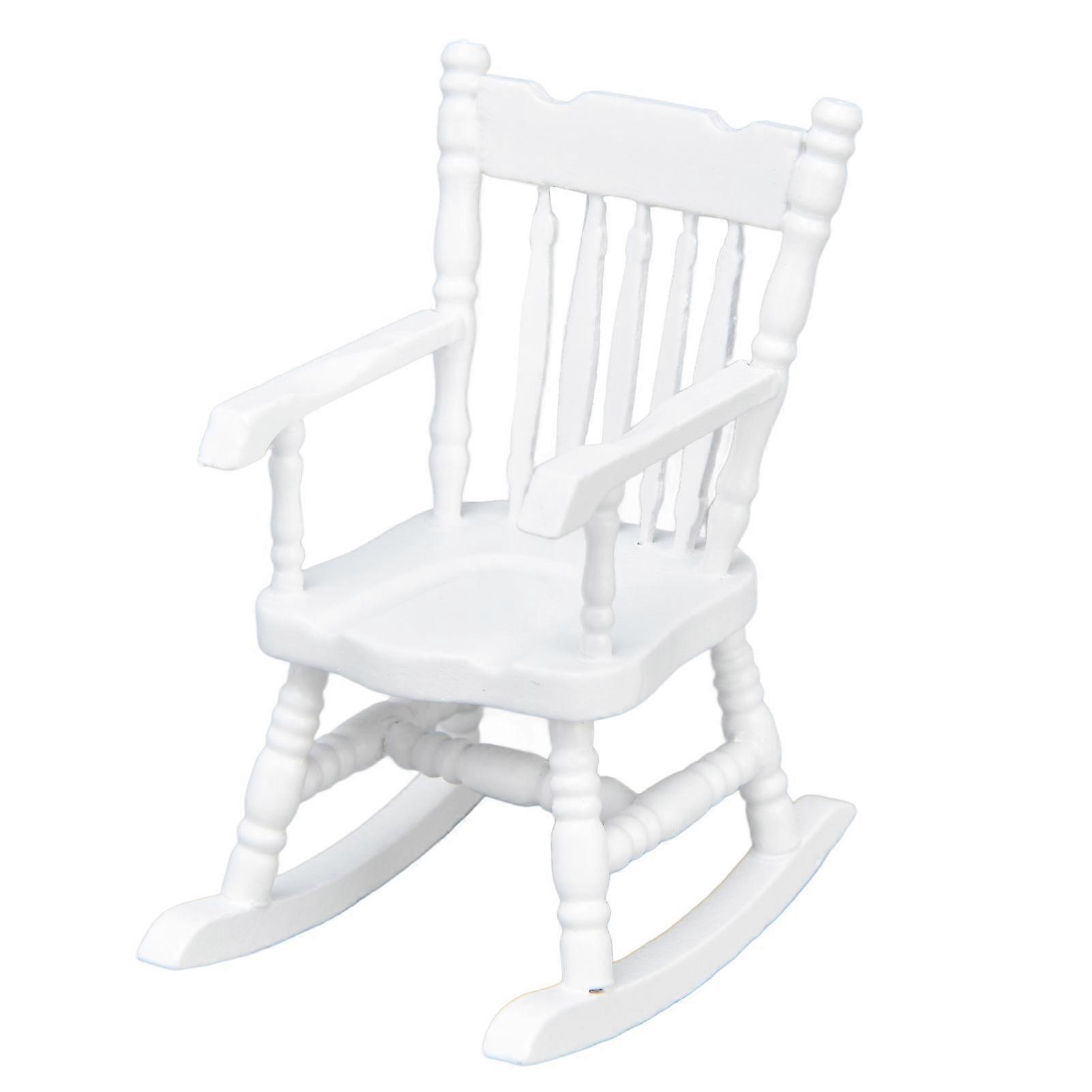 1:12 Dollhouse Chair Wood Doll House Miniature Rocking Chair White Mini Dollhouse Furniture