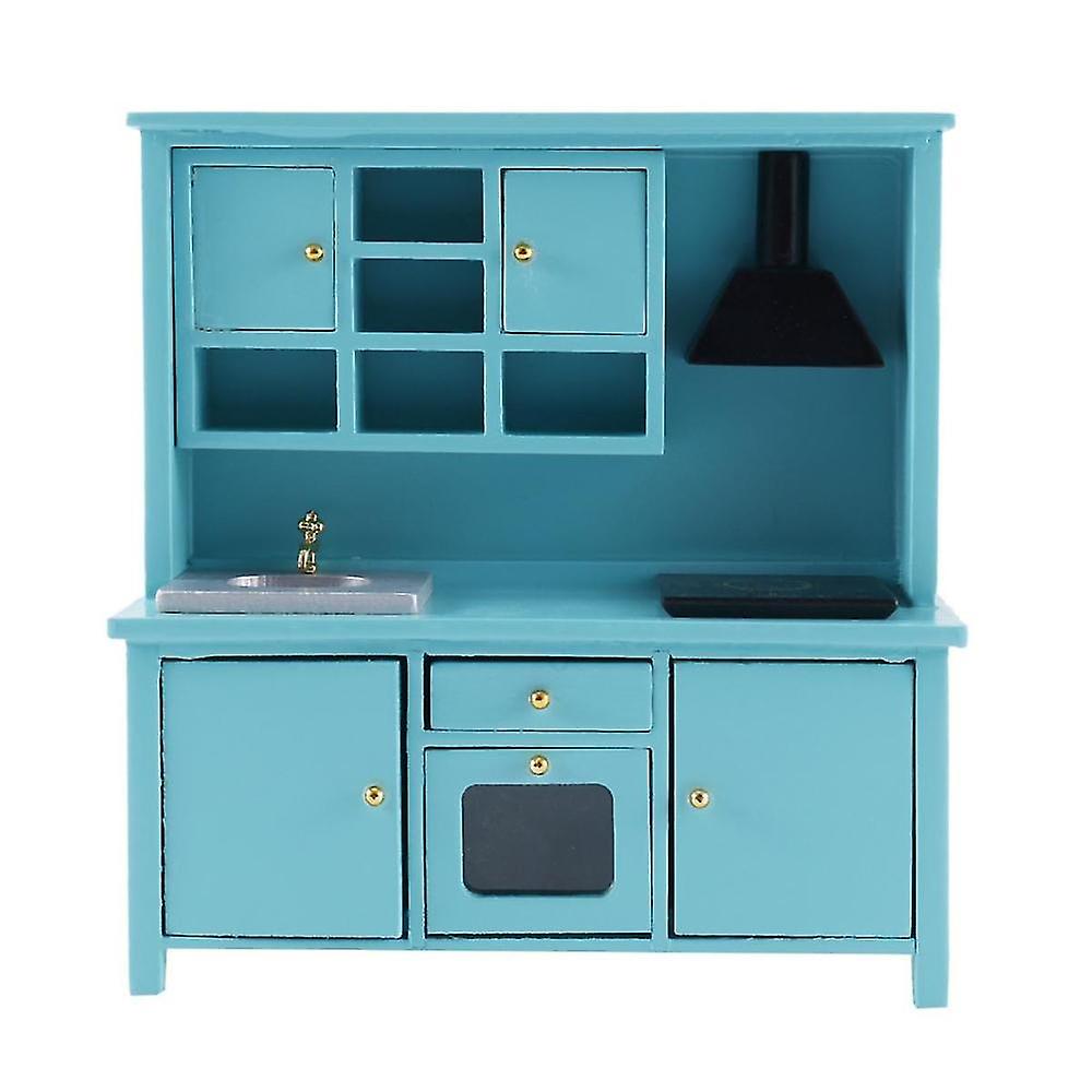 1/12 Scale Wooden Furniture Cabinet With Sink,oven,range Hood And Induction Cooker