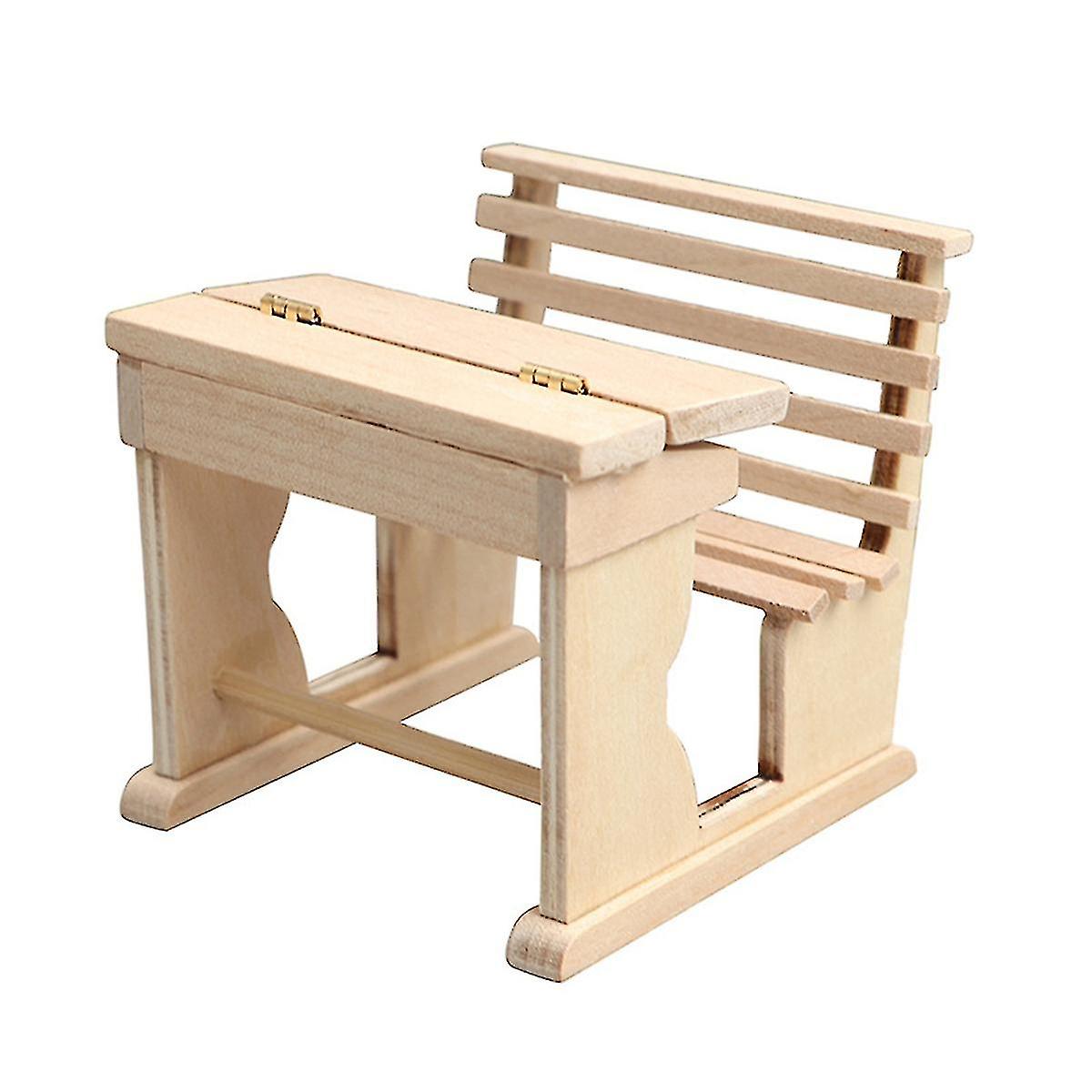 1/12 Wooden Desk Writing Study Desk Chair School Desk Furniture Model Toy Decor Accessories