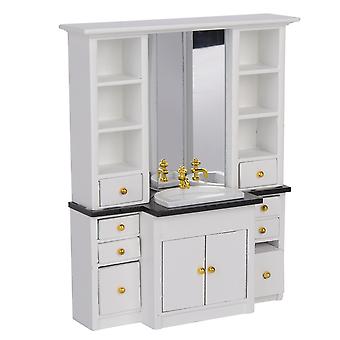 1/12 Dollhouse Mini Basin Cabinet Miniature Furniture for Bathroom Kitchen DecorationWhite