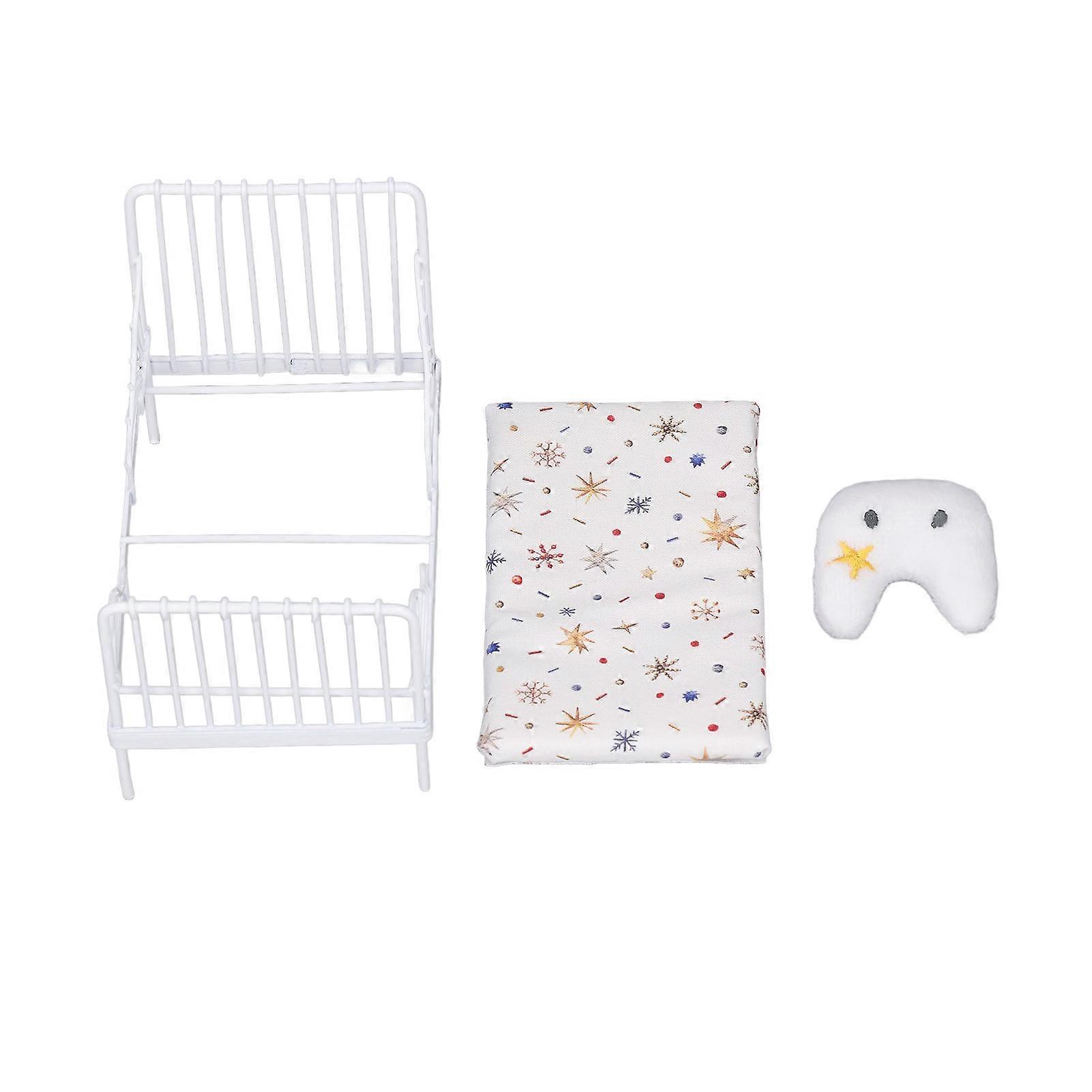 1:12 Scale Dollhouse Furniture Mini Bed Set Decorative Pillow Metal Frame Realistic Miniature Bed White Star Pattern