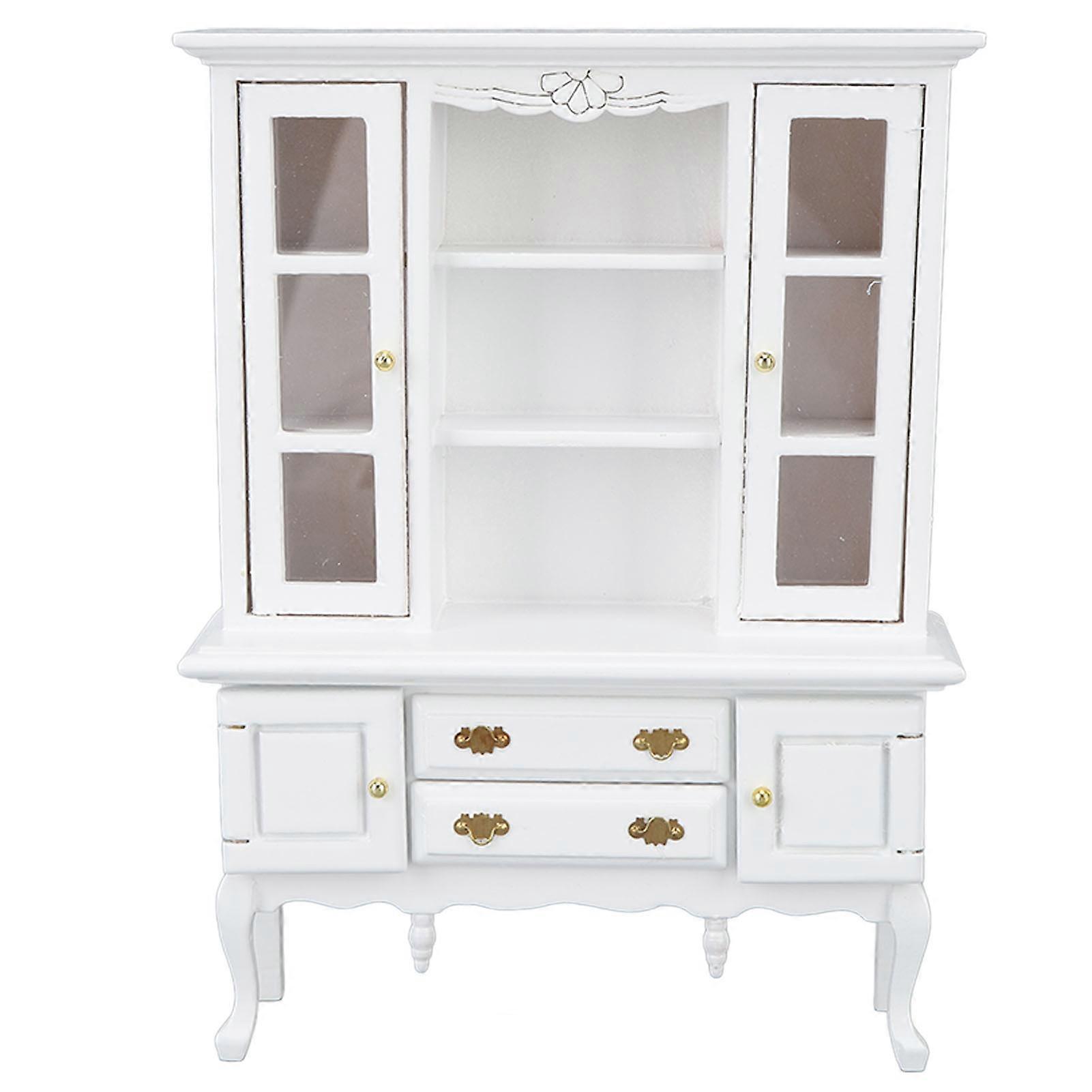 Miniature Cabinet Wooden 1/12 Scale Dollhouse Bookcase Cupboard with Openable Door Drawer for Room White