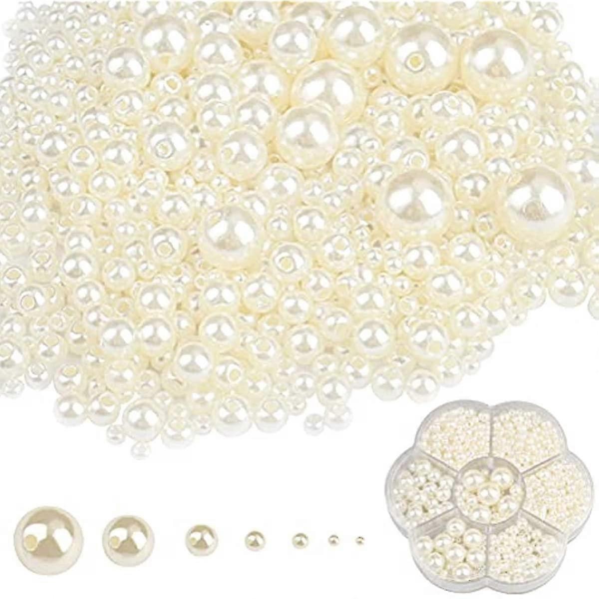 1150pcs Pearl Beads Round Beige Pearls Assorted Size Mixed Imitation Bead