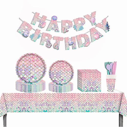 118pcs Mermaid Themed Birthday Decor Kids Birthday Party Tableware Kit Dinnerware Set NIUNIU